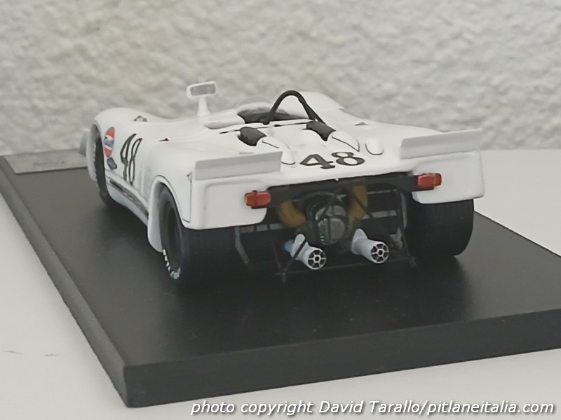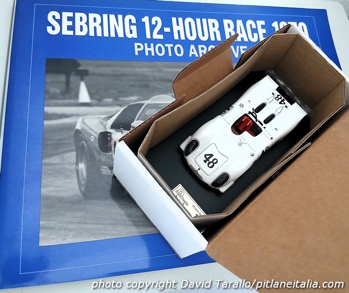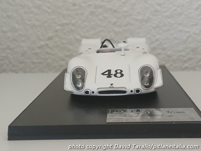 E’ vero che nelle foto la vettura appare con i fari coperti da nastro adesivo bianco, che impediscono di capire l’andamento dei filetti intorno agli alloggiamenti. Ma tu sei Marsh, non sei il primo che passa, e in teoria dovresti avere – in assenza di riferimenti sul web – una biblioteca cartacea all’altezza della situazione. Bastava infatti dare un’occhiata a qualche libro di riferimento, neanche troppo peregrino, come Sebring 12-Hour race 1970 photo archive di Robert C. Auten per dissipare in pochi secondi ogni dubbio. E invece pare che Marsh si sia limitata a copiare l’AutoArt in 1:18 che ha gli stessi errori. Ma se queste stupidaggini le puoi trovare in un giocattolo cinese (i diecast in 1:18 non sono modelli, sono giocattoli), uno speciale in 1:43 deve essere esente da certe approssimazioni. Spiace dirlo e alcune recensioni di modelli Marsh le abbiamo saltate proprio per evitare di accanirci contro errori spiegabili – ma non accettabili. Stavolta segnaliamo quest’occasione perduta che vale come ennesima prova di una mancanza di controllo finale che contraddistingue la produzione recente del marchio britannico. Sono cose da poco, si dirà. Certo, e con le tecniche odierne proporre un correttivo/aggiuntivo nelle decals è facile. Ma i montati? Chi li ha presi (e ce ne sono in giro almeno una decina) potrà sempre rimandarli indietro facendoseli rimborsare.