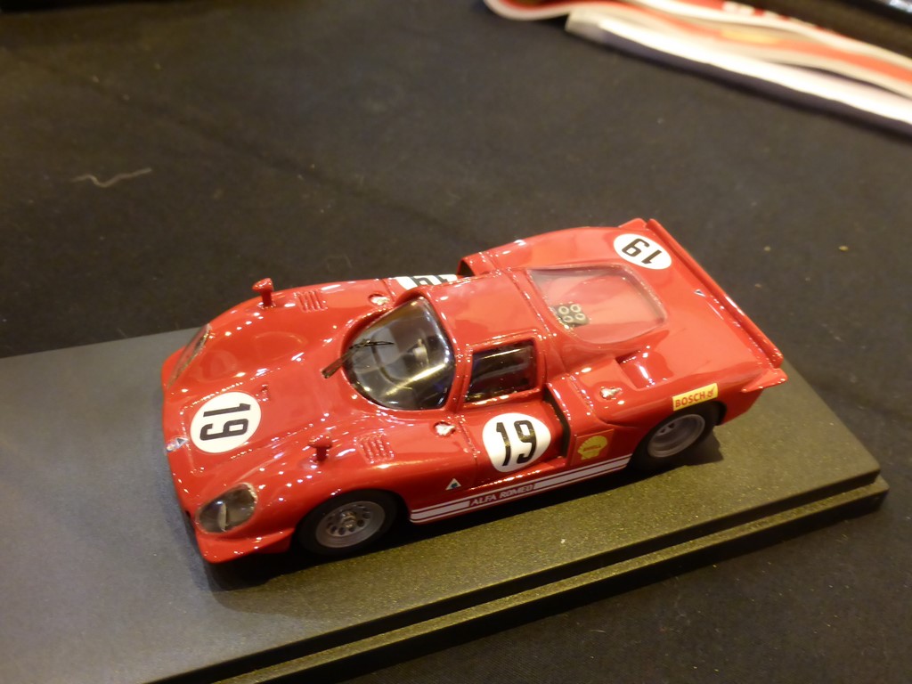 In ottima forma, Angelo Tron è presente a Rétromobile col suo bello stand, come al solito. I migliori clienti sono quelli che arrivano presto, e sono quelli che non si vogliono perdere i migliori pezzi, ben decisi su quello che vogliono e su quello che cercano. In un momento di generale incertezza per l’1:43, delle due l’una (o meglio, tutte e due): o si passa ad altre scale oppure ci si scervella per trovare qualche soggetto inedito, magari con l’aiuto di un buon prototipista, come ad esempio Patrick Cornu; ed è proprio da una collaborazione come questa che è nata l’Alfa Romeo 33 3 litri Prototipo Coupé Hockenheim 1969, pilotata da Nino Vaccarella. Una lacuna nella multiforme e decennale storia della 33 che è finalmente stata colmata, con un modello validissimo disponibile nella gamma di Angelo Tron sia in kit sia montato. Presto sarà disponibile anche la versione col vetro anteriore rotto…