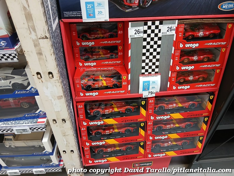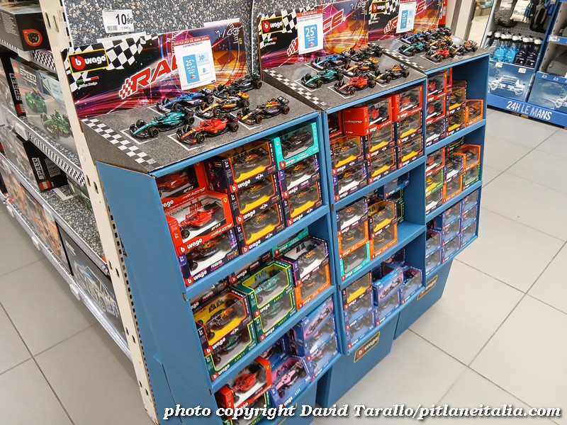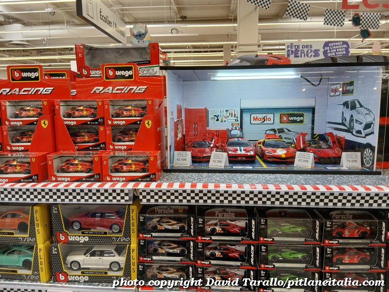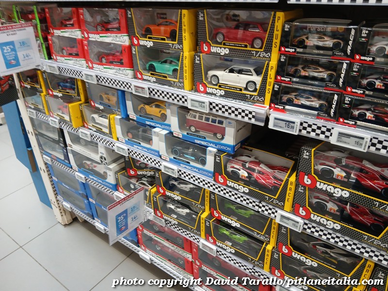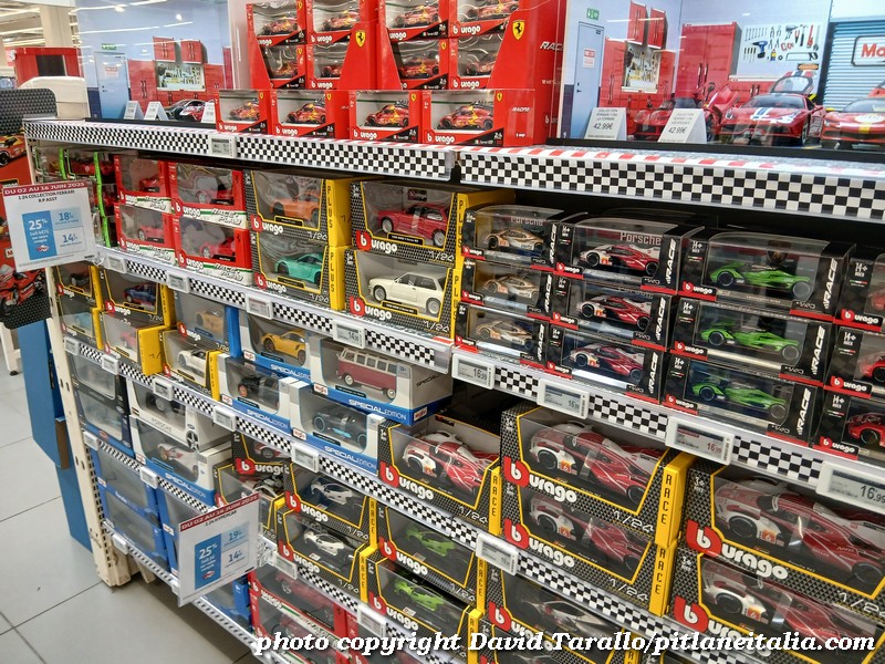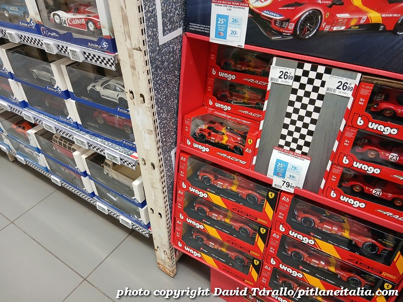 All’interno dell’ipermercato Auchan, oltre ad una bella scelta tematica di libri e oggettistica sulla 24 Ore di Le Mans, troviamo diversi scaffali pieni di Burago, Solido e anche un BBR in 1:43! Nulla di originale, beninteso, ma quanti supermercati italiani possono vantare un tale assortimento?