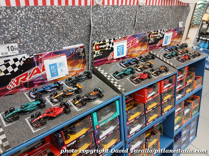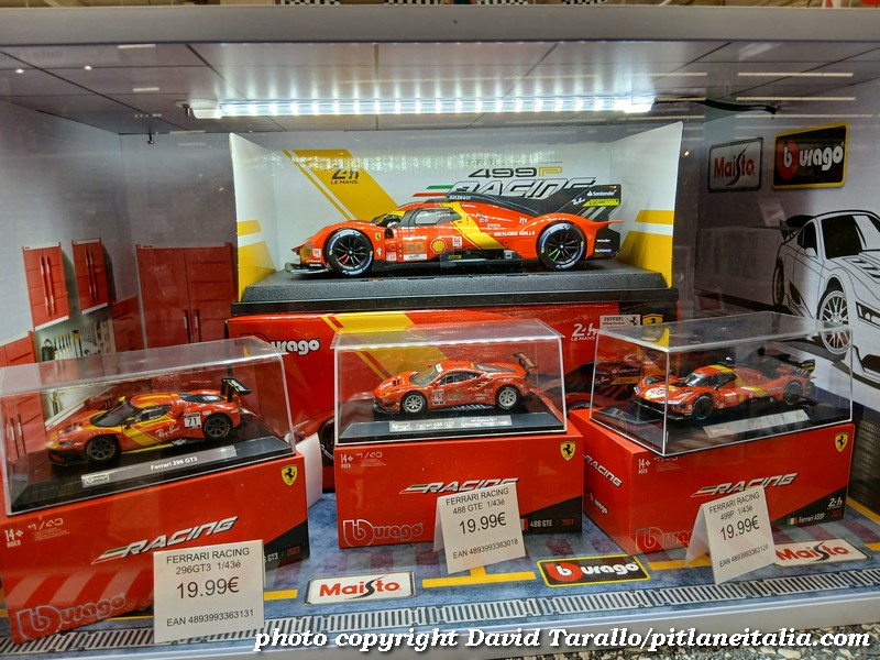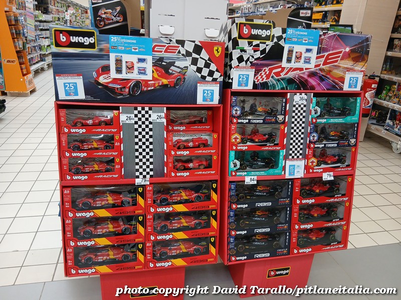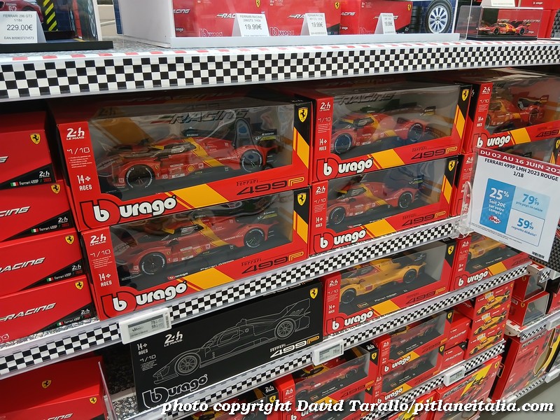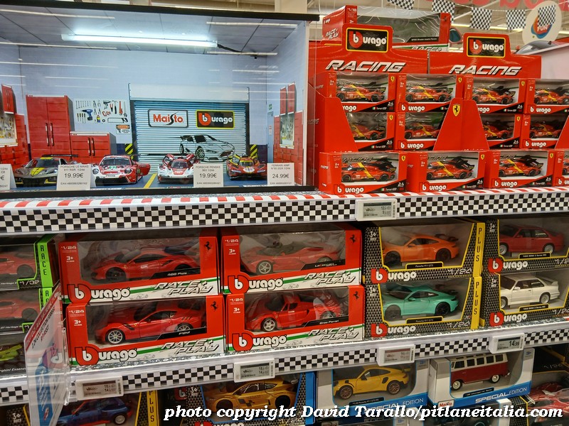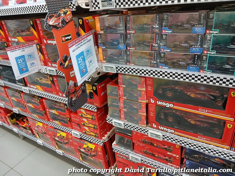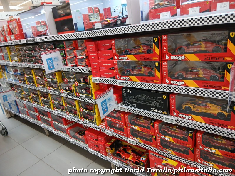All’interno dell’ipermercato Auchan, oltre ad una bella scelta tematica di libri e oggettistica sulla 24 Ore di Le Mans, troviamo diversi scaffali pieni di Burago, Solido e anche un BBR in 1:43! Nulla di originale, beninteso, ma quanti supermercati italiani possono vantare un tale assortimento?