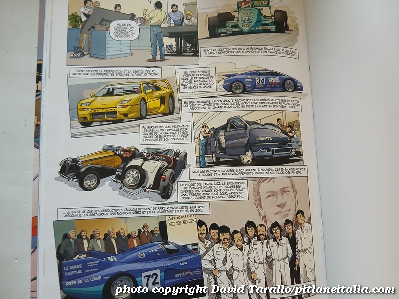 Jean Rondeau fu un personaggio controverso, tutt’altro che facile e nel 40° anniversario della sua scomparsa, questo numero di Plein Gaz offre qualcosa di assolutamente insolito. Disegnata da Christian Papazoglakis e sceneggiata da un esperto giornalista, Pascal Dro, la storia comincia come se fosse un flashback, con un Jean Rondeau che da piccolissimo assiste alla vittoria della Ferrari alla 24 Ore di Le Mans 1949. Le prime scene raffigurano il tristemente famoso passaggio a livello di Champagné dove Rondeau fu travolto dal treno Rennes-Parigi il 25 dicembre 1985. Una morte assurda, conseguenza di un gesto imprudente. In quel periodo, Jean Rondeau attraversava un periodo critico e si trovava probabilmente al termine di un’epoca. Avrebbe dovuto evolversi, adattarsi all’automobilismo che cambiava: i progetti non mancavano ma la situazione restava delicata dopo anni di crisi.