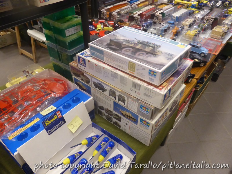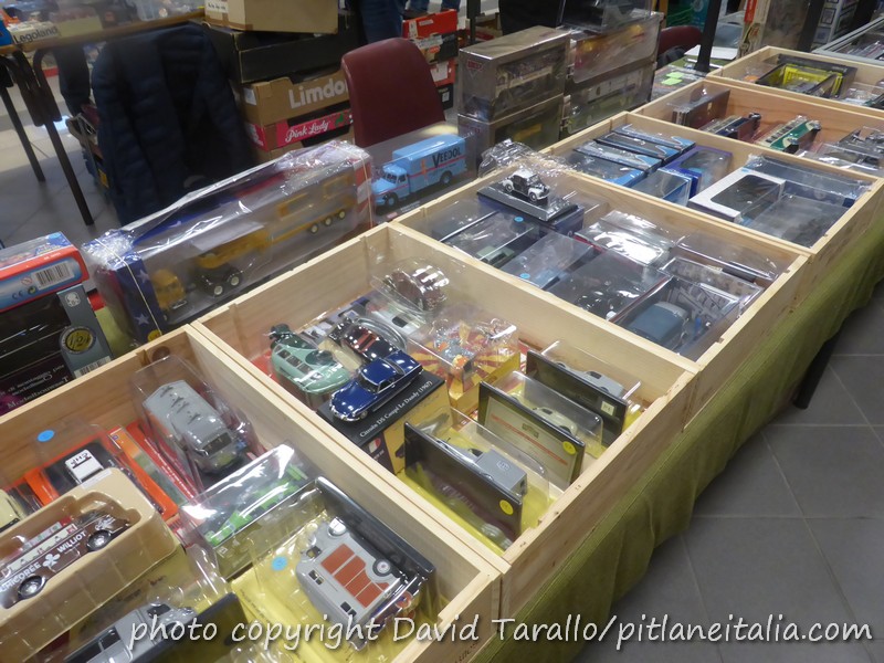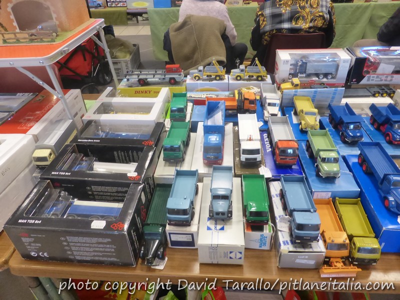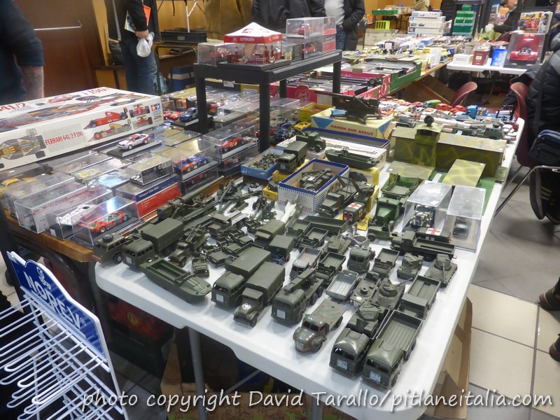 Sembrerebbe confermarsi la tendenza a una certa diminuzione dei modelli da edicola, che fino a pochi anni fa inondavano letteralmente banchi e banchi anche nelle manifestazioni più piccole. In compenso, c’era la possibilità di acquisire modelli Solido serie 10 e 100, buoni per trasformazioni e recupero parti, a prezzi davvero bassi.