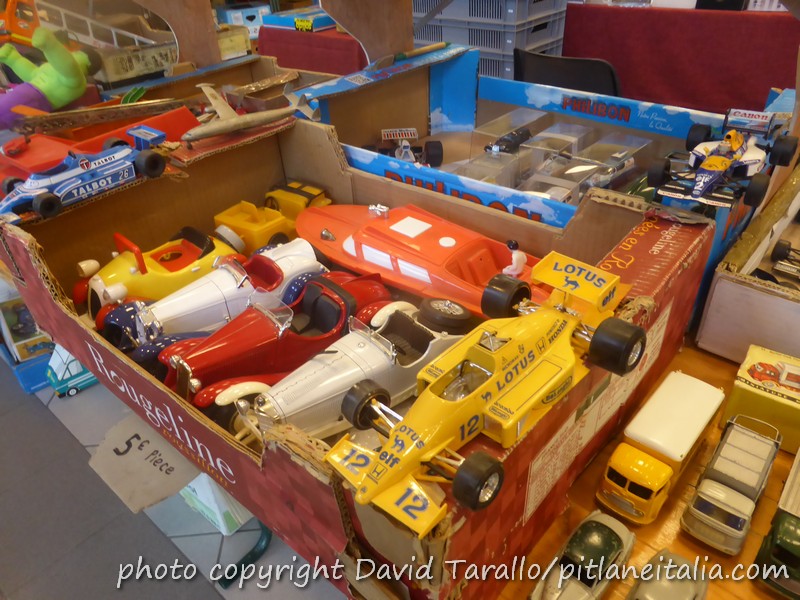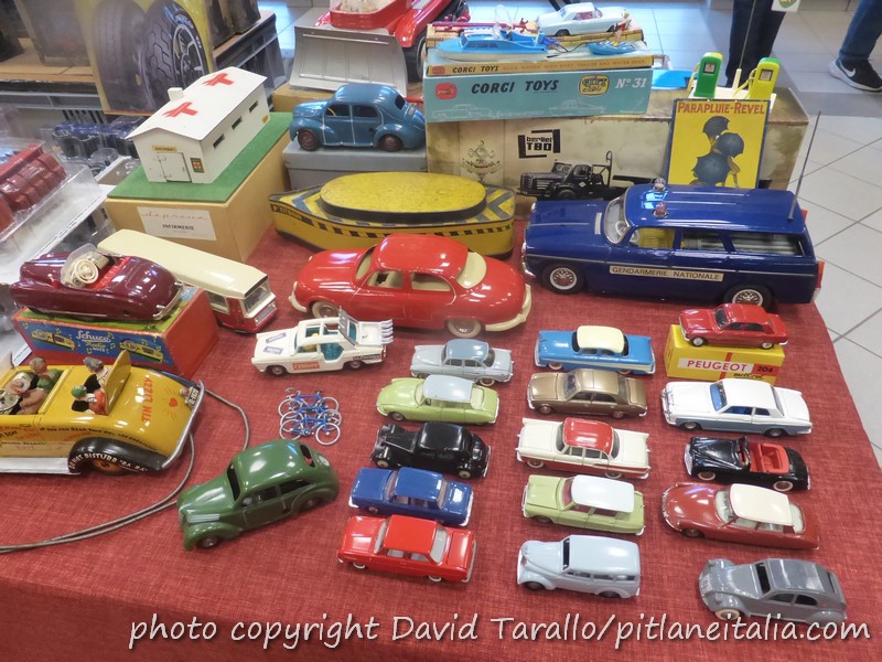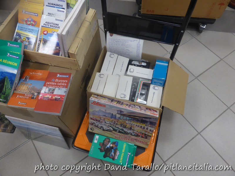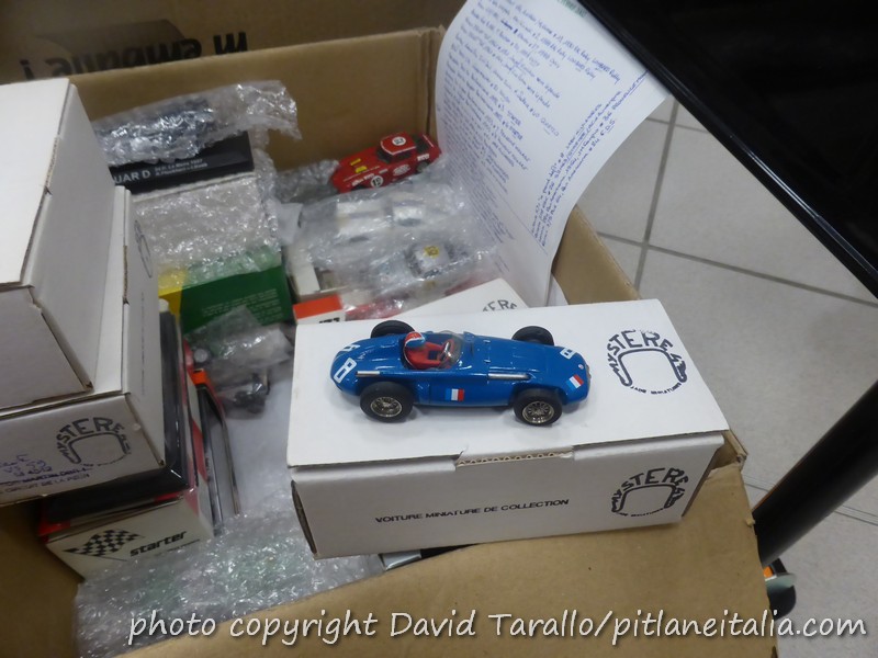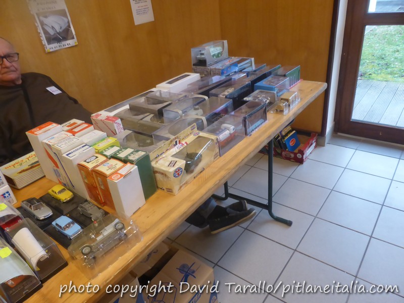 Quanto ai modelli speciali, su un paio di tavoli si potevano trovare kit interessanti (DAM-Team T, Mini Racing, FDS, Starter, Provence Moulage) e alcuni montati di un certo pedigree, come una parte della collezione appartenuta a Patrice Besqueut, già direttore dell’Automobile Club d’Auvergne, deceduto nel 2021: fra i pezzi più attraenti, uno dei modelli commissionati a Starter e S2M63 dall’A.C. d’Auvergne a fine anni ’80 (in questo caso la Porsche 718 RSK pilotata da Jean Behra alla 2 Ore di Charade del 1959), una serie di modelli di Michel Vaillant factory built di Jade e alcuni Provence Moulage e Starter della Carrera Panamericana (Lancia, Mercedes, Gordini), anch’essi montati da Jade. Non male per un evento di provincia.