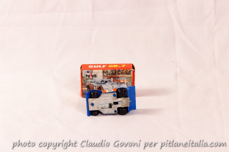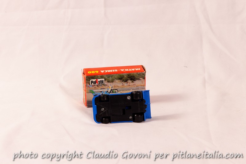 Discutibile, invece, la scelta della tonalità per Matra e Mirage. Se per la prima il punto di blu potrebbe ancora essere accettabile, per la seconda appare totalmente errato. Fatico francamente a capire da cosa derivi la scelta di non usare l’azzurro Gulf. Forse sarebbe stato usato solo per quel modello e la scelta venne reputata antieconomica. Nota di colore: sul muso della Matra fanno bella mostra di sé il logo della zingara danzante e la scritta “Gitanes”. Qualcosa di impensabile oggi persino nell’ambito delle produzioni finalizzate al collezionismo, figuriamoci nel mondo dei giocattoli. Ah, tempi ingenui in cui si dava per scontato che i taddei non sarebbero diventati istantaneamente tabagisti per la sola visione di un logo riprodotto in scala!