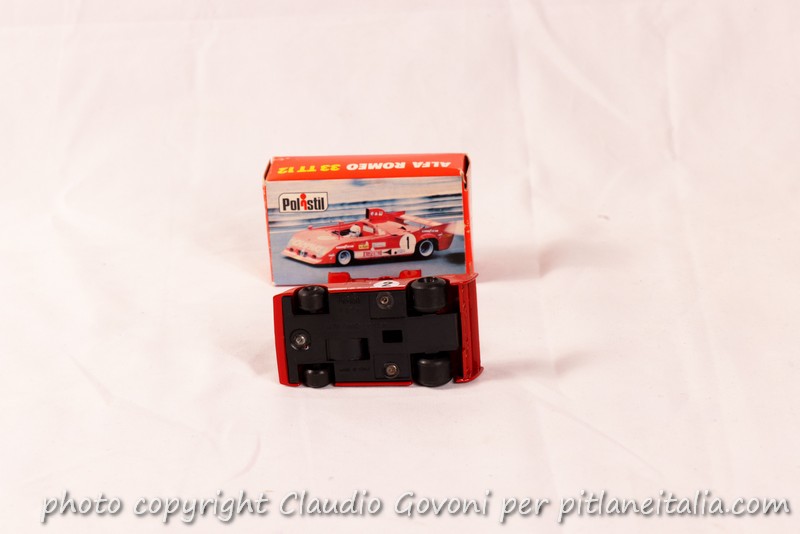 Il costo di questi modelli, alla fine degli anni ‘70, era di 500 lire l’uno. L’Alfa 33, unitamente a una delle Can-Am (la Porsche 917), venne anche pantografata e riprodotta esattamente identica, sia come proporzioni che come decorazione, in versione slot car in scala reclamizzata come 1/43, in realtà 1/50.